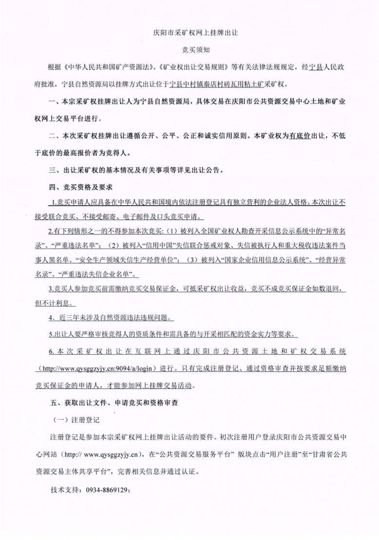 索引号: 621026zrzyj000/20240930-00061 发布机构: 生效日期: 2024-09-30 废止日期: 文 号: 所属主题: 公示公告 庆阳市采矿权网上挂牌出让竞买须知 来源: 发布时间:2024-09-30 浏览次数: 次 【字体:小 大】 【打印正文】 分享到: 【字体:小 大】