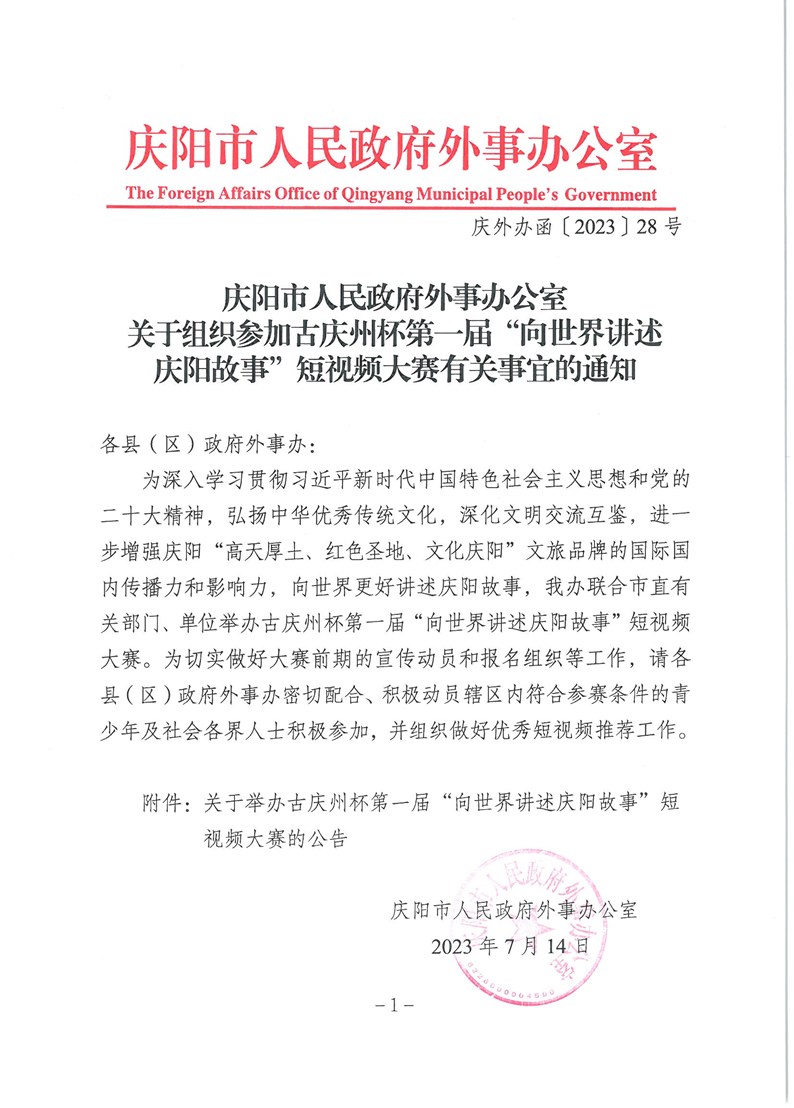 索引号: 621026xzf000/20230719-00084 发布机构: 宁县人民政府办公室 生效日期: 2023-07-19 废止日期: 文 号: 所属主题: 公示公告 关于组织参加古庆州杯第一届“向世界讲述庆阳故事”短视频大赛有关事宜的通知 来源:庆阳市人民政府外事办公室 发布时间:2023-07-19 浏览次数: 次 【字体:小 大】 【打印正文】 分享到: 【字体:小 大】