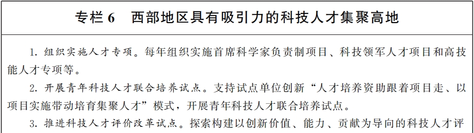 (四)全力建设西部地区具有吸引力的科技人才集聚高地。
