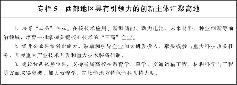 (三)着力建设西部地区具有引领力的创新主体汇聚高地。