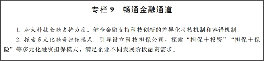 22.加大科技金融支持力度。健全多层次科技金融服务体系,加强支持资本投早、投小、投长期、投硬科技的政策供给。引导银行业金融机构加大科技信贷规模,针对科技创新规律和科技型企业特点,完善差异化的授信审批、风险管控、考核激励等措施。鼓励金融机构设立科技支行、科技担保公司,组建专业化科技金融团队,开发知识产权质押担保、股权质押担保等金融产品。(责任单位:省委金融办、省科技厅、省发展改革委、省工信厅、省财政厅、人行甘肃省分行、甘肃金融监管局)