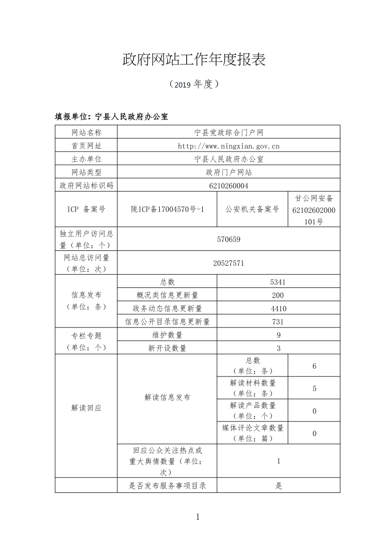 索引号: xzf-2020-01-16-00005 发布机构: 宁县政府 生效日期: 2020-01-16 废止日期: 文 号: 所属主题: 政府网站工作年度报表 2019年宁县政府网站工作年度报表 来源: 发布时间:2020-01-16 浏览次数: 次 【字体:小 大】 【打印正文】 分享到: 【字体:小 大】